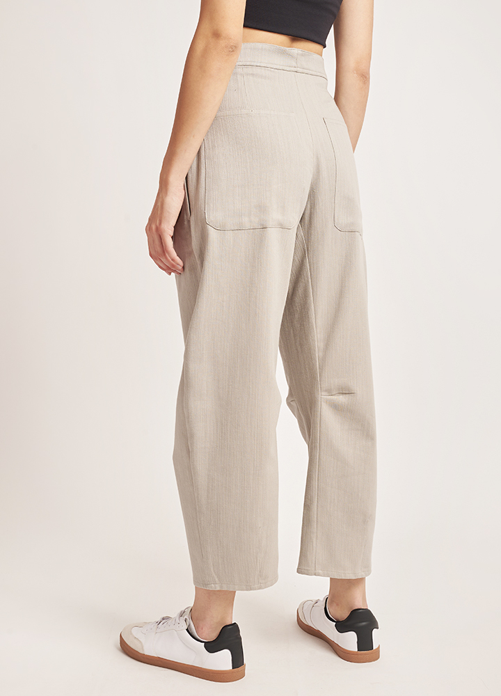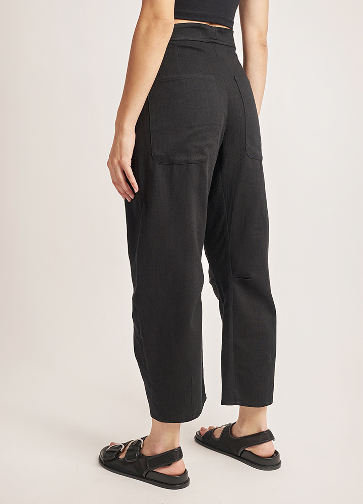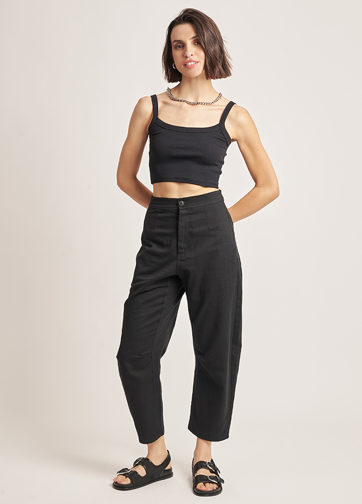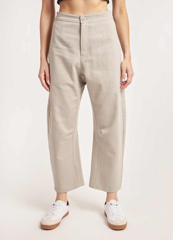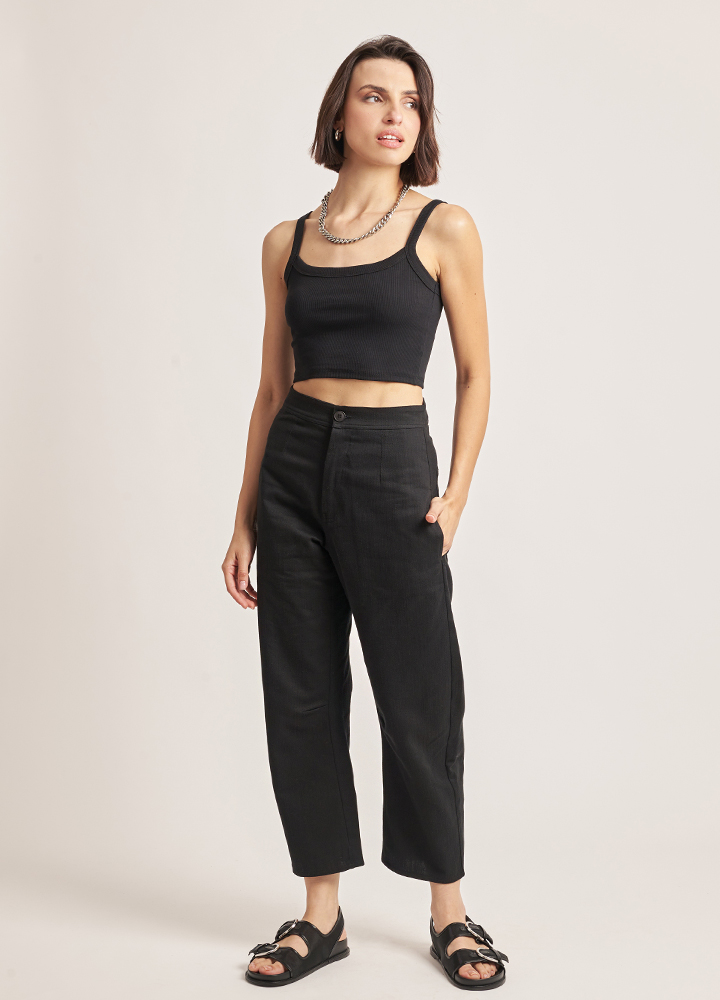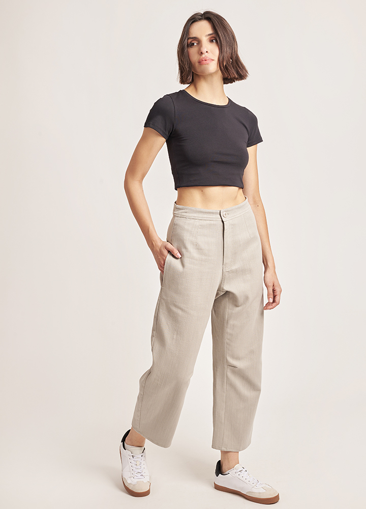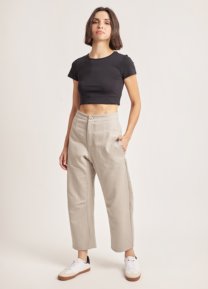 Ψηλόμεσο βαμβακερό παντελόνι. Διαθέτει πλαϊνές και πίσω τσέπες και φτάνει στον αστράγαλο. Είναι το must-have παντελόνι της σεζόν και αποτελεί ιδανική επιλογή για τα καθημερινά σου looks.