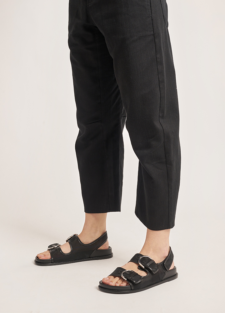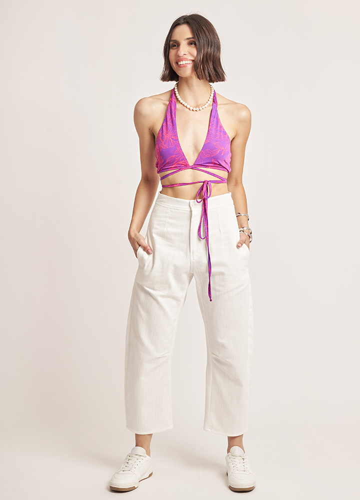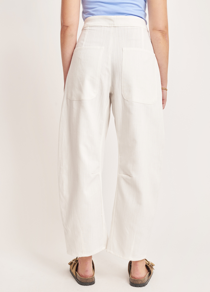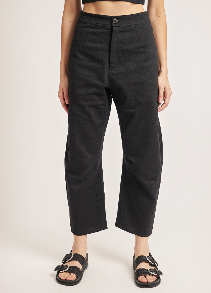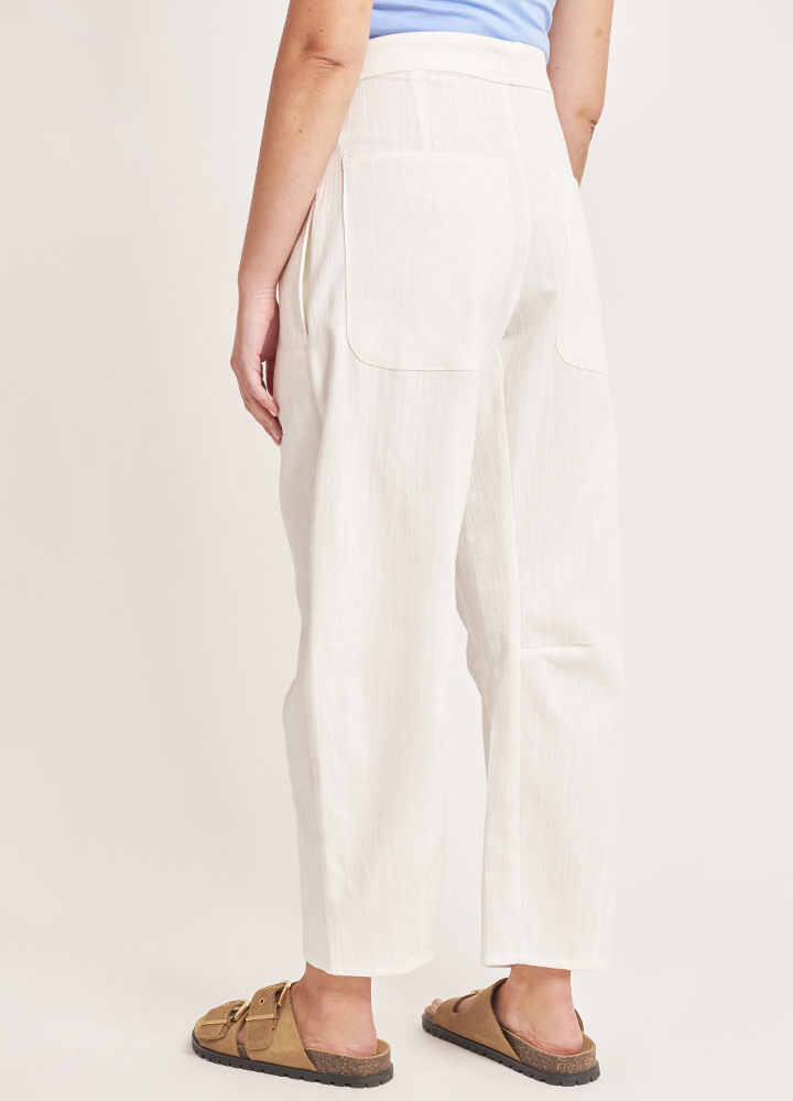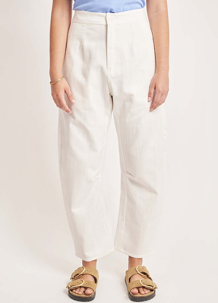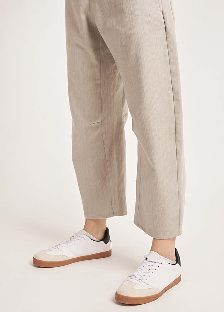 Ψηλόμεσο βαμβακερό παντελόνι. Διαθέτει πλαϊνές και πίσω τσέπες και φτάνει στον αστράγαλο. Είναι το must-have παντελόνι της σεζόν και αποτελεί ιδανική επιλογή για τα καθημερινά σου looks.