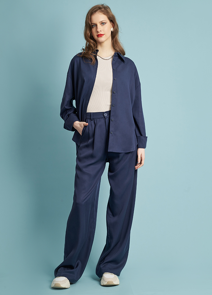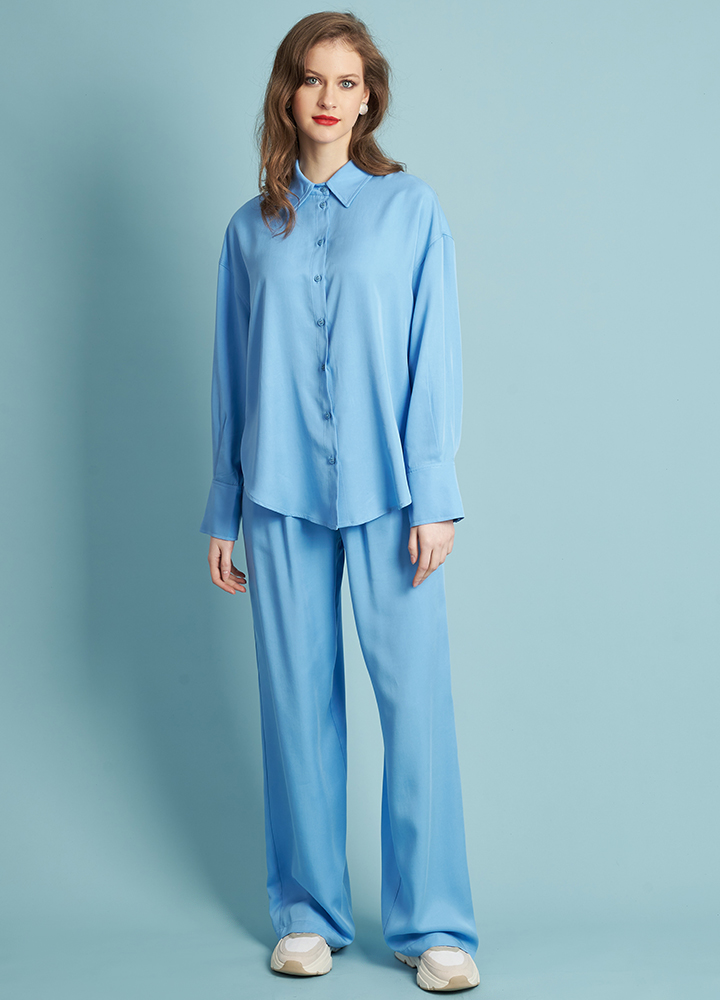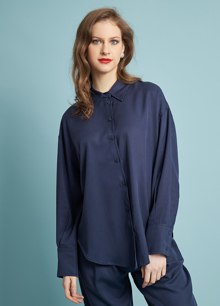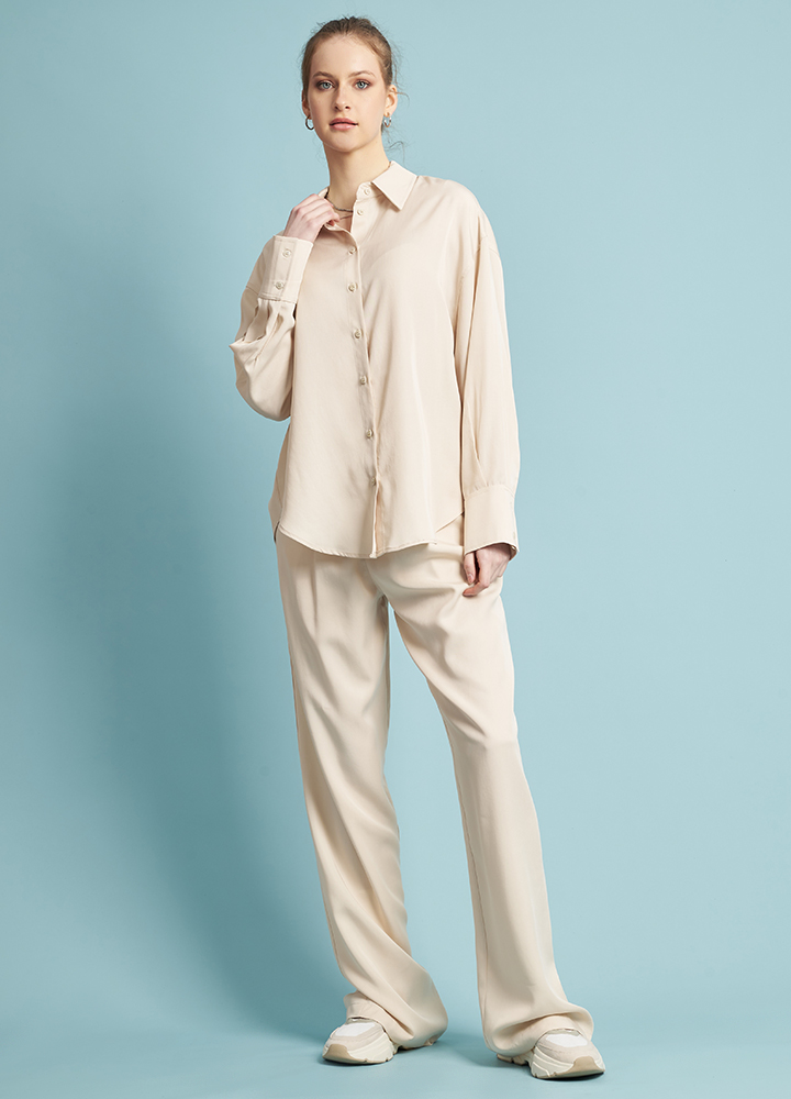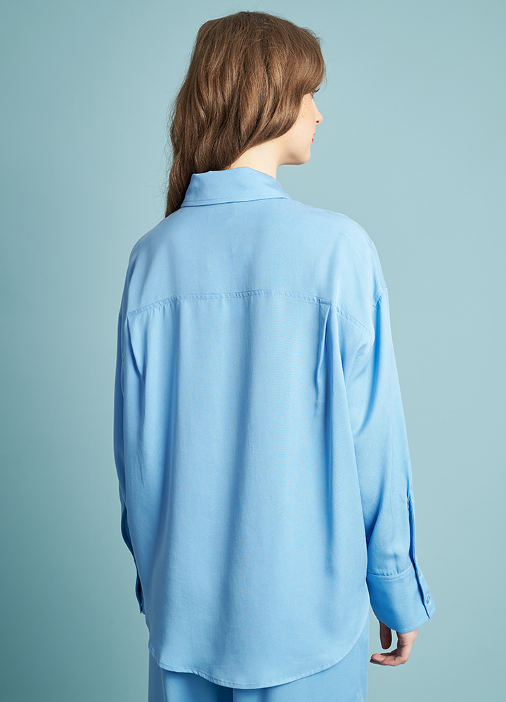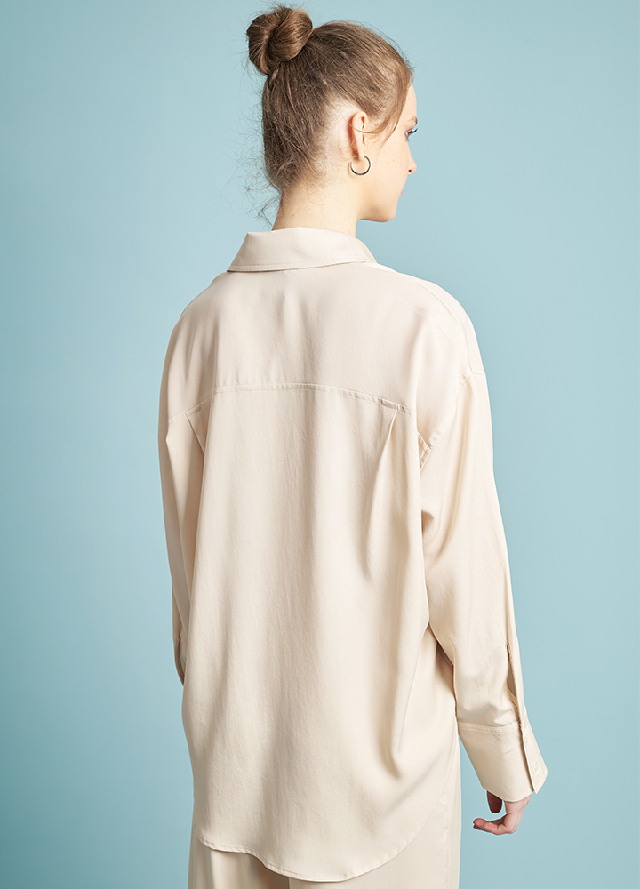 Oversized πουκάμισο 100% Lyocell σε ίσια γραμμή. Διαθέτει μακρύ μανίκι, γιακά και κουμπιά. Είναι μονόχρωμο με άνετη γραμμή. Συνδυάζεται τέλεια με την παντελόνα 272060.